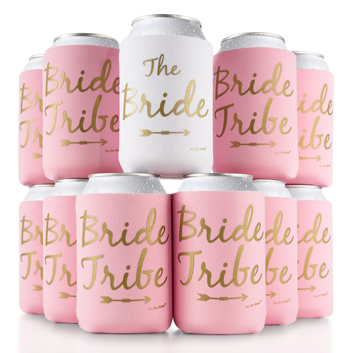 Bride Tribe Bachelorette Party Favor Can Sleeves - 11 Pack Insulated Neoprene Drink Huggies, Fits Regular Beer Cans (Rosé Pink)